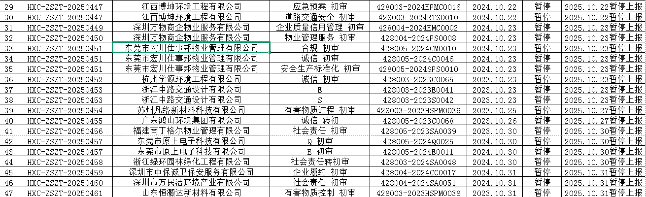2025年10月份认证证书暂停名单