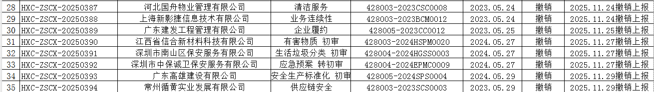 2025年11月份认证证书撤销名单